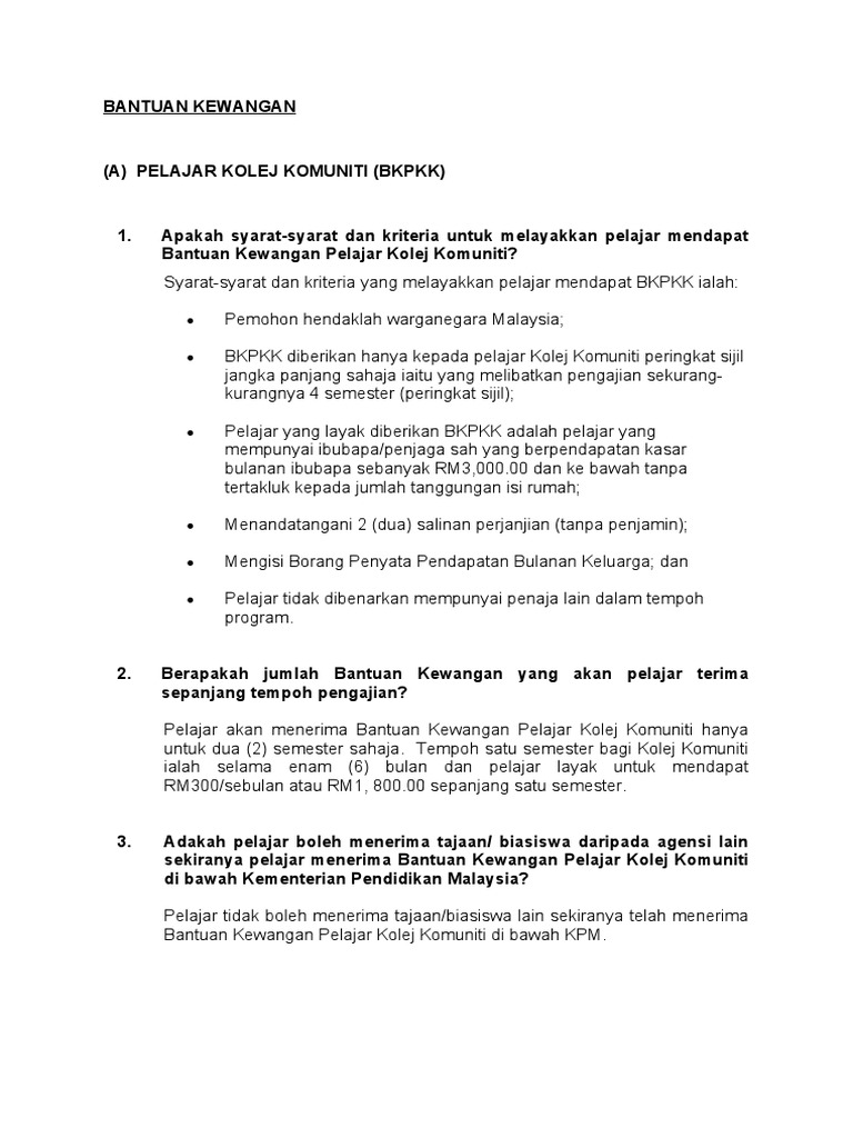 Satu Borang Untuk Satu Permohonan Sahaja Bantuan Kewangan Bulanan Bantuan Motorsikal OKU Bantuan Kecemasan Bantuan Menyelesaikan Hutang Bantuan Deposit Sewa Beli Teksi Bantuan Tambang dan Keperluan Diri Bantuan DepositSewa Rumah Bulanan Bantuan Deposit Sewa Beli VanBas Sekolah Bantuan Persediaan Sekolah. Slip gajisurat pengesahan pendapatan ibu bapa disahkan Borang Bantuan Khas Kewangan Pelajar Sabah BKPS Senarai semak penghantaran dokumen. Pemohon mestilah melengkapkan Borang Permohonan Program Bantuan Kewangan Pembaikan Penyelenggaraan dan Kerja-Kerja Kecemasan di Rumah Ibadat Selain Islam yang disediakan oleh Kementerian Perpaduan Negara seperti di Lampiran 1.
